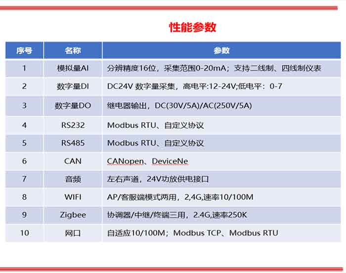 (1)系统架构、(2)硬件配置、(3)IO接口、(4)性能优势比较、(5)配套软件、(6)性能与功能验证(I/O稳定性、通讯稳定性、宽温度范围运行) 、(7)根据客户需求验证((a)与SCADA系统兼容性;(b) 复杂环境下数据采集功能;(c)海量传输需求下载数据远距离传输) 等特性部分组成。