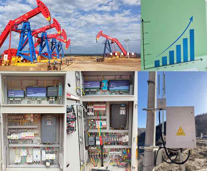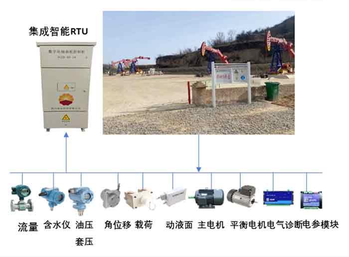 - (2)长庆十二厂、三厂:(a)智能抽油机控制柜:油压、套压、动液面、含水仪、载荷、角位移、电参模块、智能诊断模块等模拟和数字仪表的数据采集,抽油机主电机、平衡电机的控制。(b)智能RTU与井场AP实现WIFI无线组网,通过交换机与井场光纤网络连接生产平台,完成生产数据与控制指令的上传下达,实现智能化采油。